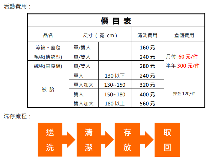 將待洗寢具送至易儲居,由易儲居交由專業洗衣店清洗,清洗後寢具直接送至易儲居存放不用堆在家裡,讓您省時又省空間。